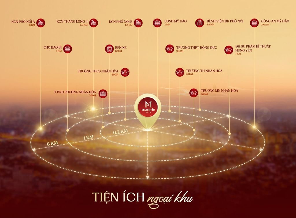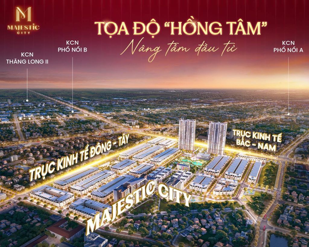 Khu đô thị Majestic City là khu đô thị xanh có hệ thống hạ tầng kỹ thuật và hạ tầng xã hội đồng bộ, gắn với các khu dân cư hiện hữu. Khu đô thị Majestic Phố Nối với hệ thống dịch vụ tiện ích, khu thương mại dịch vụ, công viên trung tâm, công viên cây xanh phân khu, nhà ở cộng đồng.